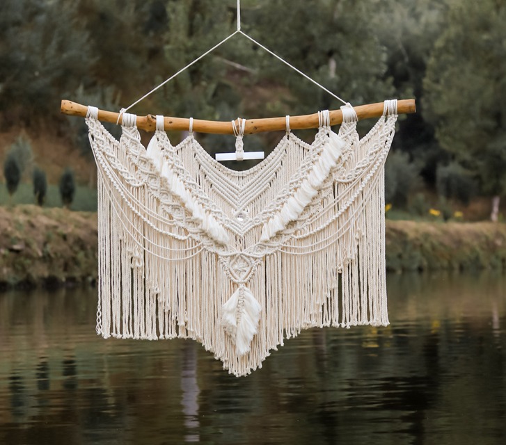 Os nossos trabalhos em macramé são feitos à mão, com muito carinho, dedicação e atenção ao mais pequeno detalhe, transformando cada nó numa obra de arte que se irá destacar da restante decoração.